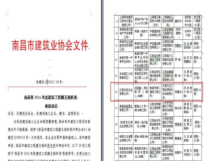 由南昌市第二建筑工程公司承建的郭家庄B地块棚户区改造项目(安置房)5#、6#、7#、8#楼及地下车库工程获“2016年第一批江西省建筑结构示范工程” [摘自赣建质监字[2016]1号]。