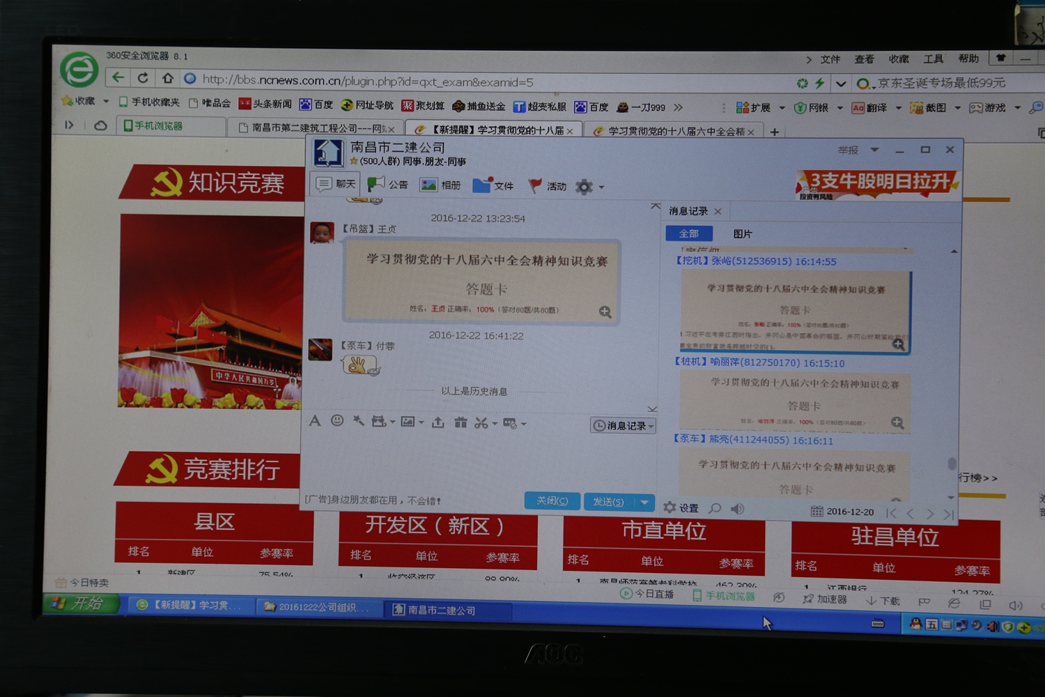为深入学习宣传党的十八届六中全会精神,激发广大党员学习热情,营造学习浓厚氛围,根据市纪委、市组织部、市宣传部联合发文要求,公司组织全体党员以及入党积极分子、发展对象、预备党员参加“知识竞赛”。