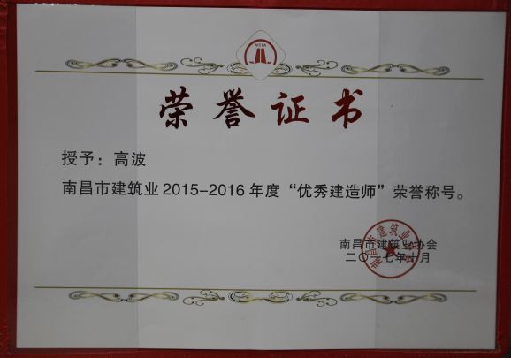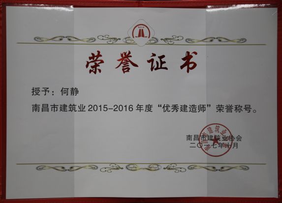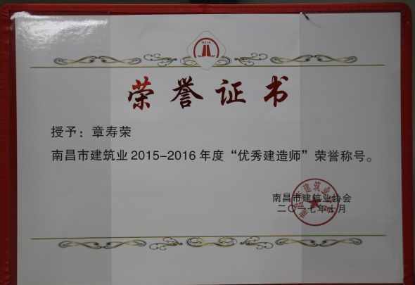 南昌市建筑业协会对公司颁发了南昌市建筑业2015-2016年度“先进企业”荣誉称号,对公司建造师章寿荣、何静、胡建平、高波颁发了南昌市建筑业2015-2016年度“优秀建造师”荣誉称号;中国建筑业协会对章寿荣颁发了全国建筑业企业优秀项目经理荣誉称号。