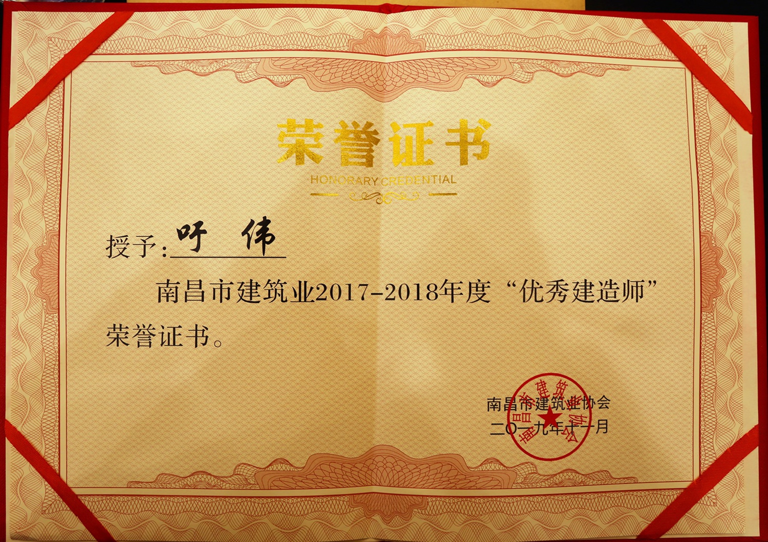 会上宣布了《关于表彰2017——2018年度南昌市建筑业先进企业和优秀建造师(监理师)的通报》和《南昌市2019年度建筑工程滕王阁杯奖表彰决定》,我司荣获了先进企业荣誉称号,吁伟同志荣获了优秀建造师荣誉称号,匠人聚.南昌市建筑设计研究院有限公司总部基地项目荣获滕王阁杯奖。